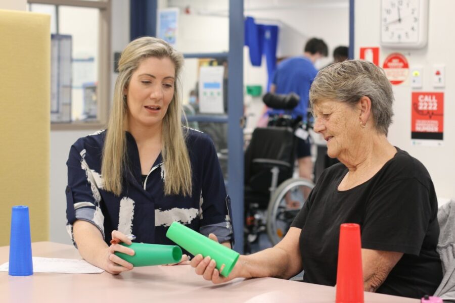 Recovery following an injury is never easy, particularly if it is an injury to the brain caused by a stroke. Delayed intervention can lead to widespread and long-lasting problems, so it is important that best practices are in place to give stroke survivors optimal chances at regaining their strength. Photo: Dr Laura Jolliffe completes arm …