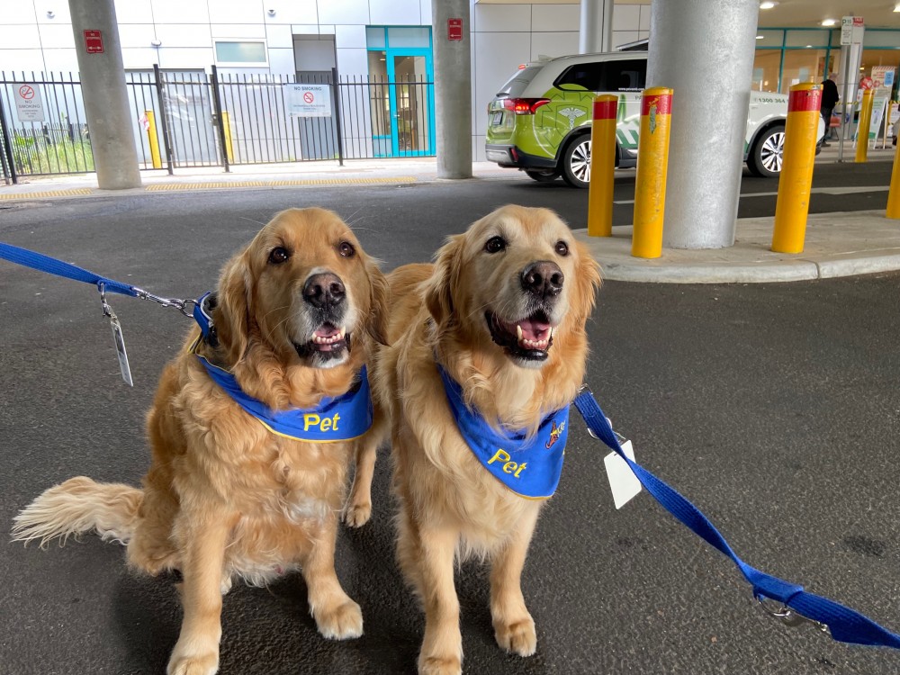 After two years, therapy dogs are back at Peninsula Health. To celebrate their return, we spoke with Jeff and Judy who currently visit Frankston Hospital 1 West and 2 West and the Psychiatric Assessment and Planning Unit (PAPU) with their dogs, Benson and Sam, every two weeks.